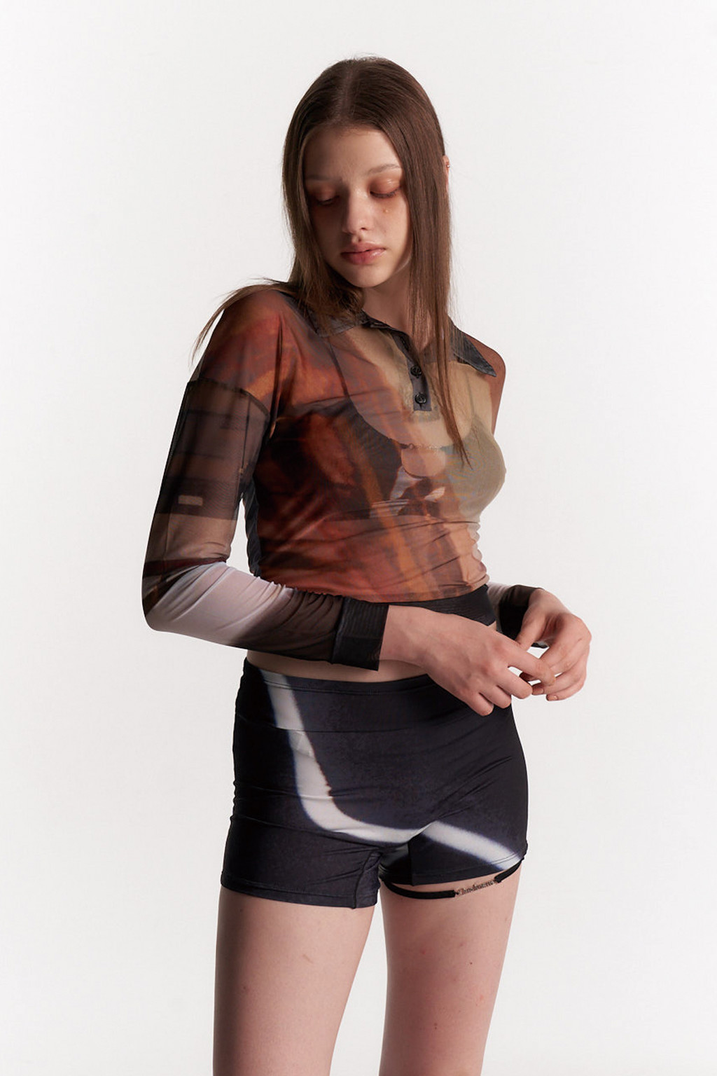 - Old fashioned 칵테일에서 영감을 받은 색감의 오렌지 레드 브라운톤의 메쉬 카라탑