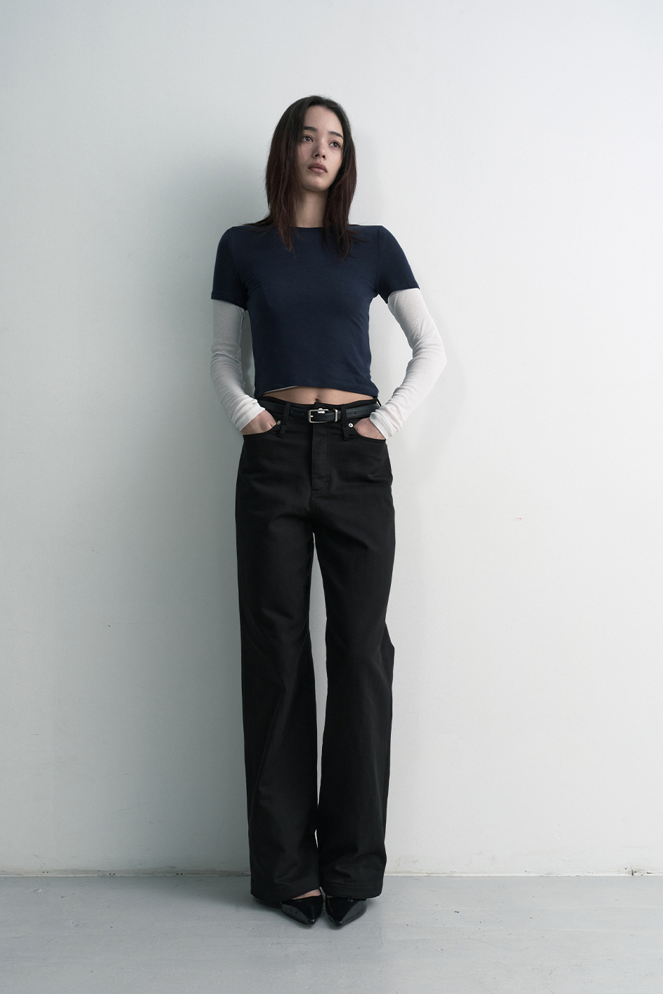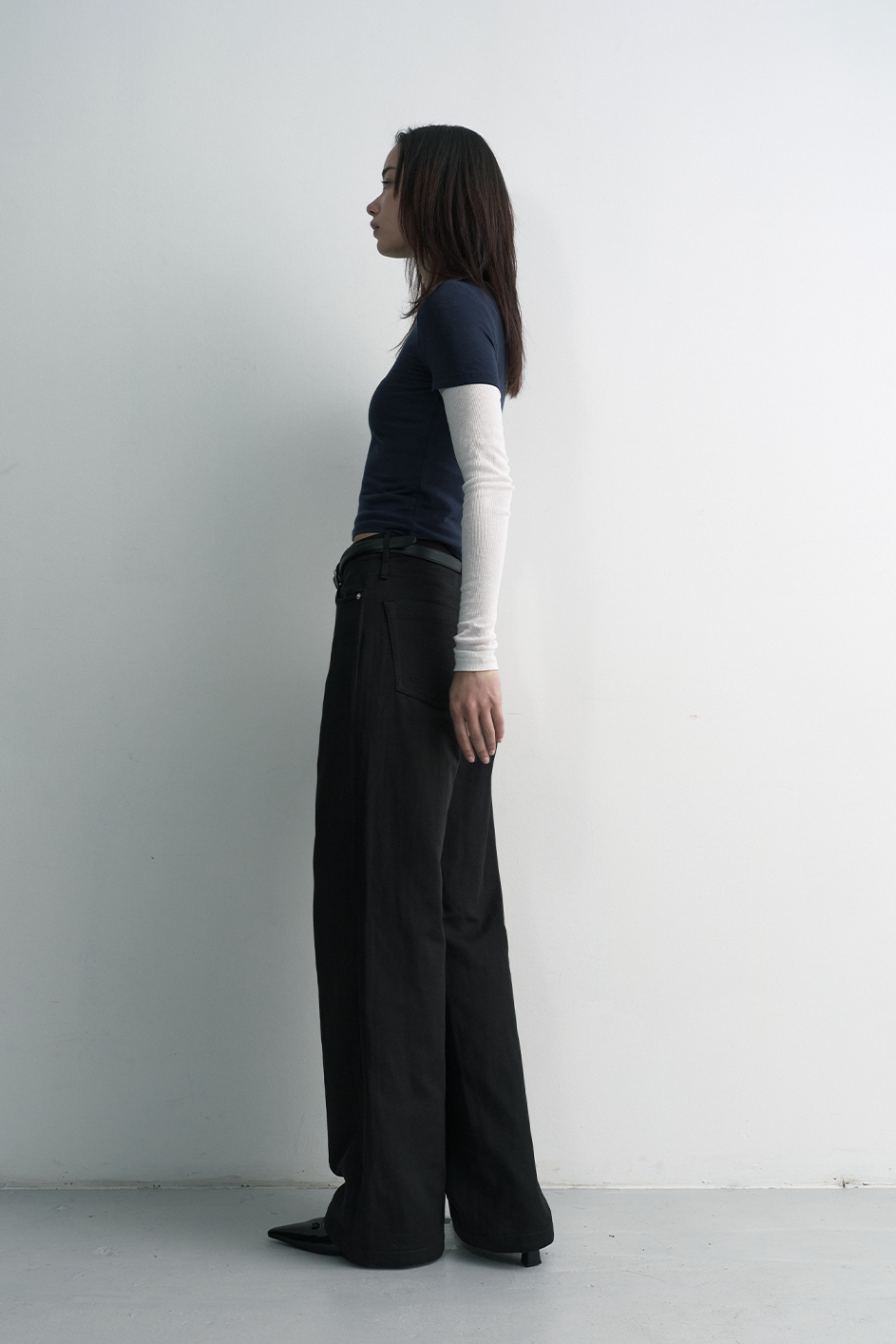 -S / LENGTH 108 WAIST 35 RISE 29.5 HIP 48.5 THIGH 32.3 HEM 26.5