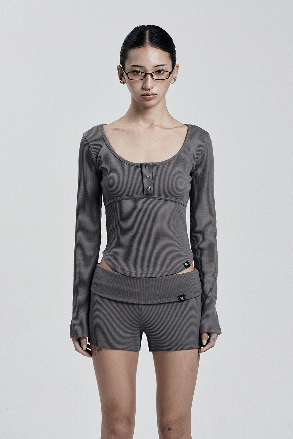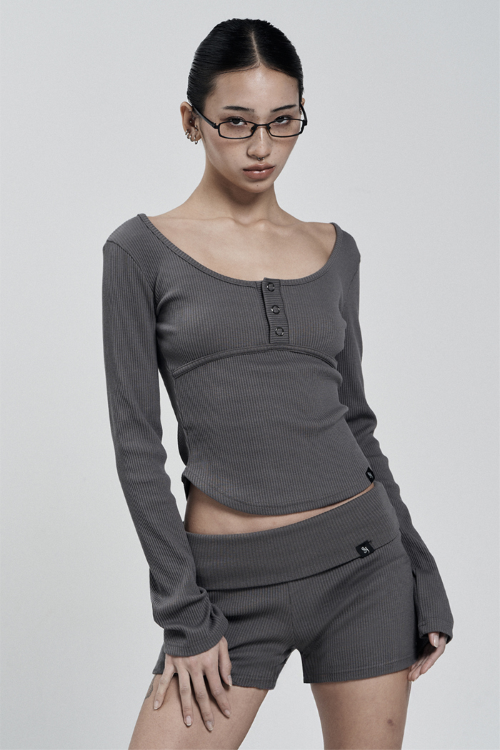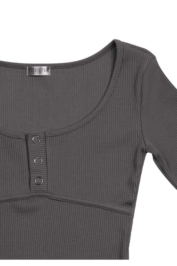 LINE BUTTON LONG SLEEVE (CHARCOAL)
