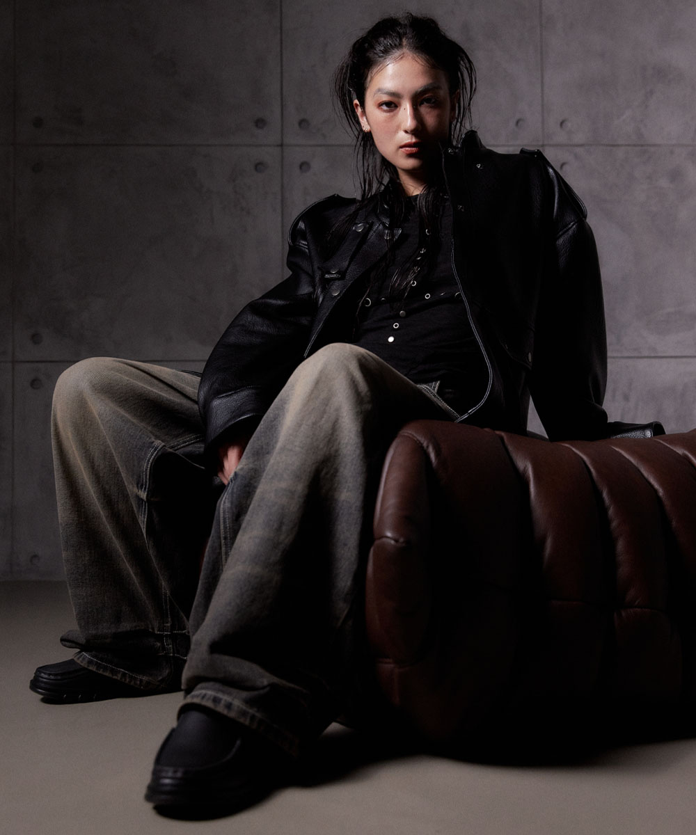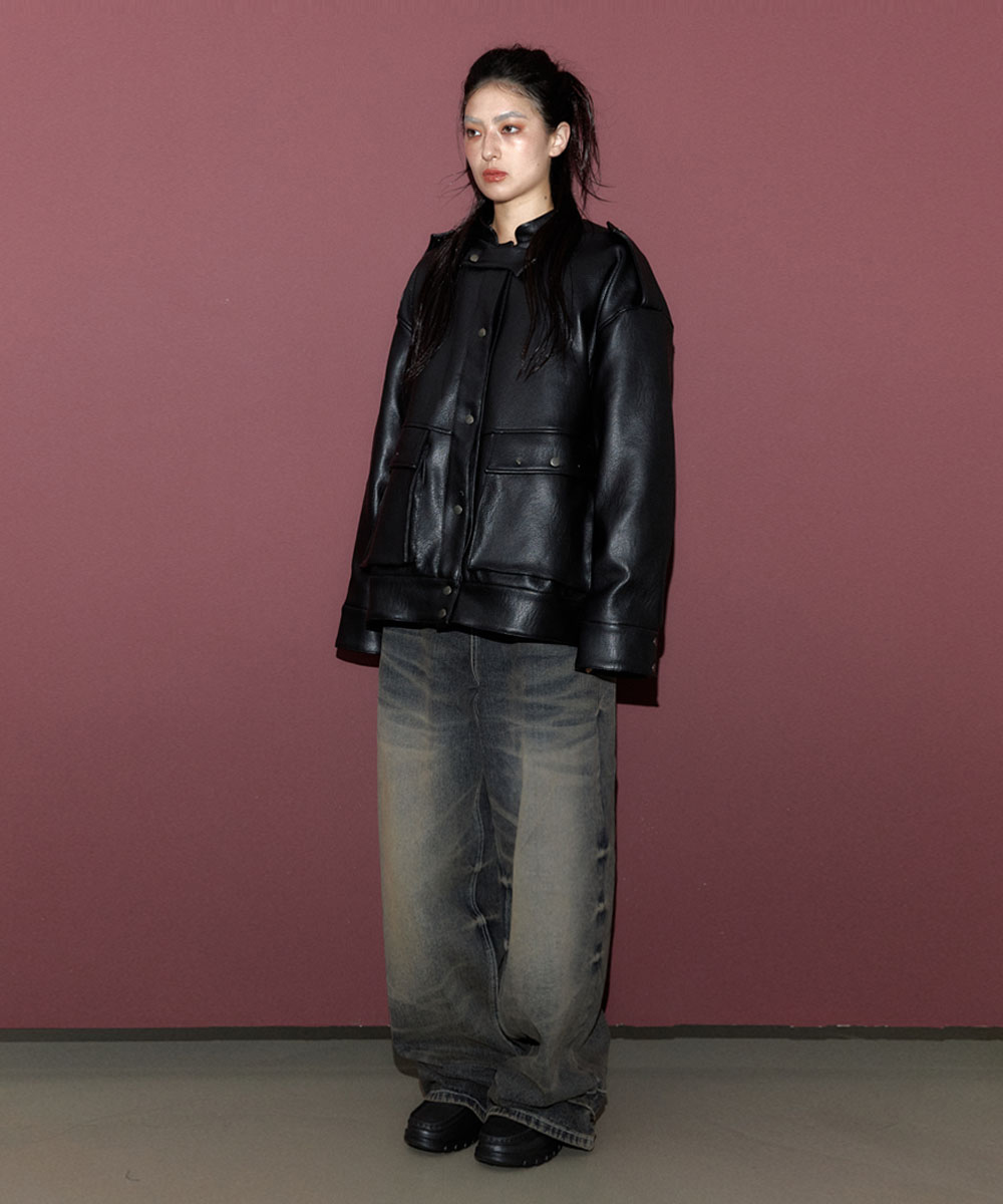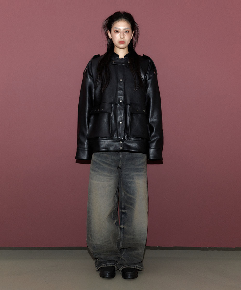 • 빈티지한 질감의 비건 레더 원단 사용