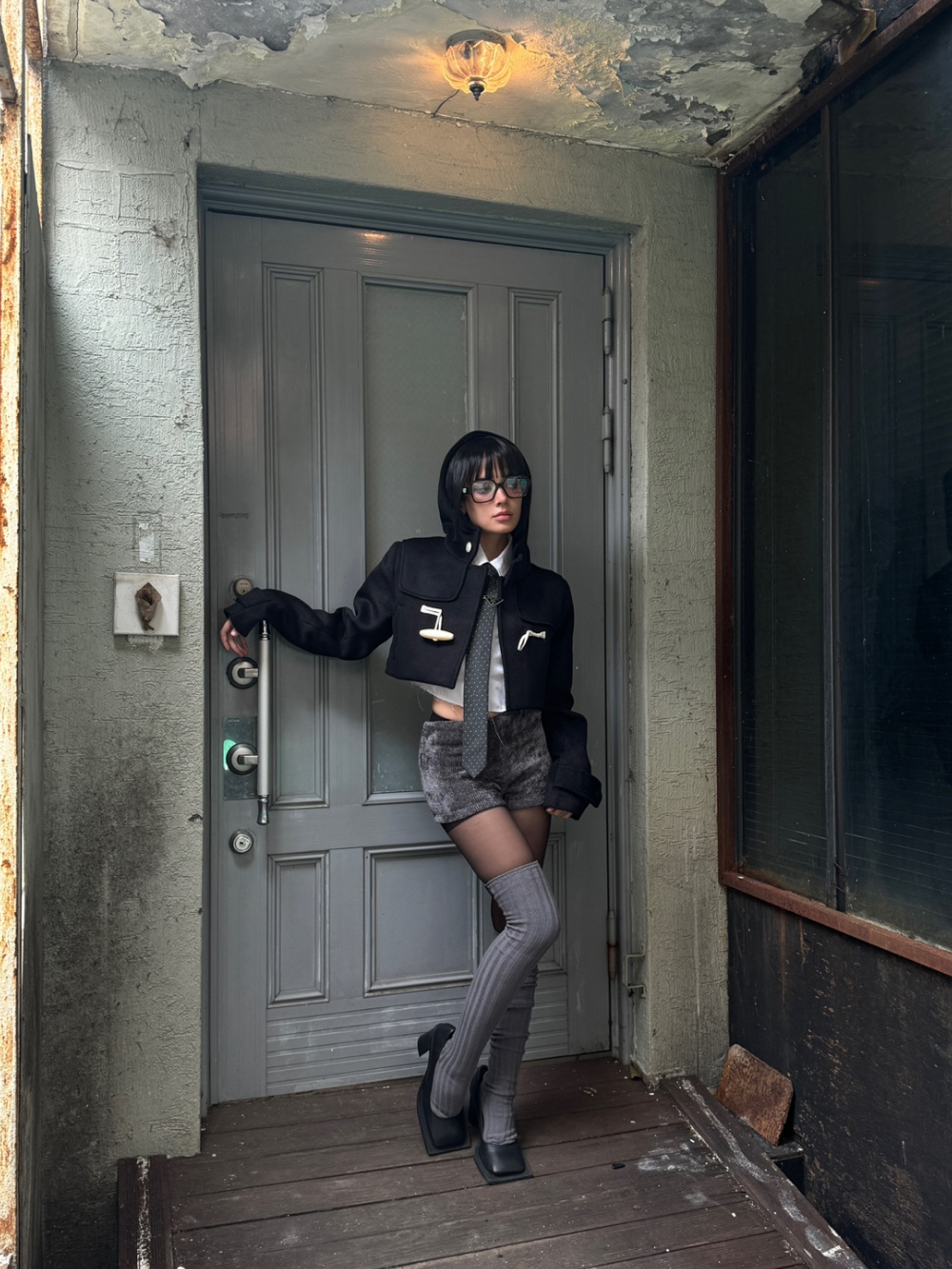 - 후드 숏 코트