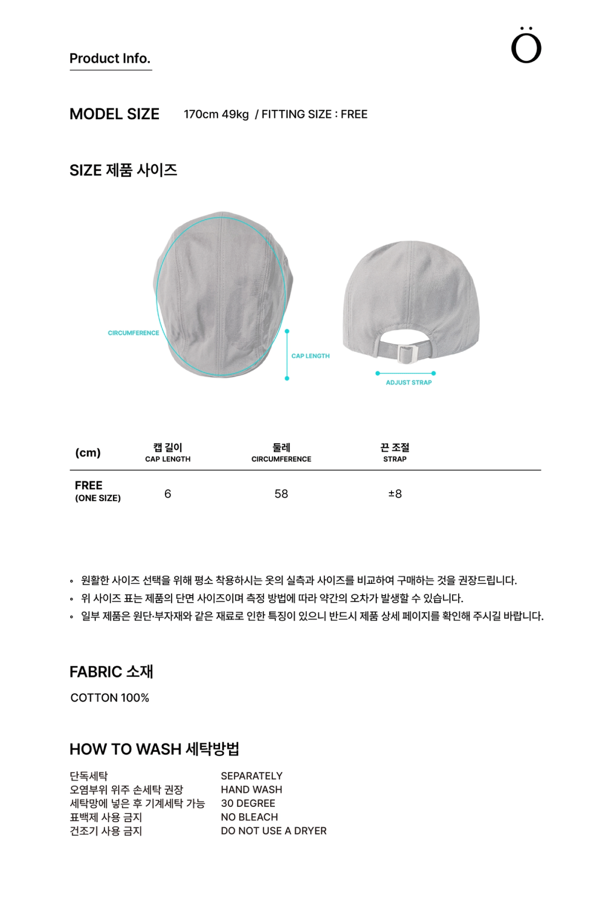 - 실측 사이즈는 재는 부분이나 사람에 따라 약간의 오차가 발생할 수 있습니다.