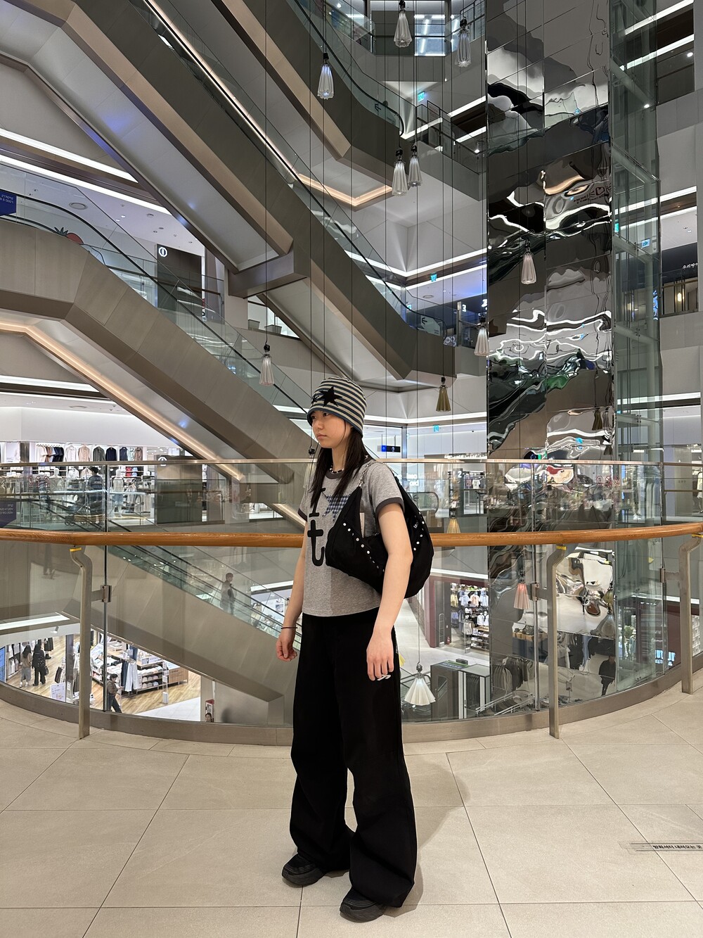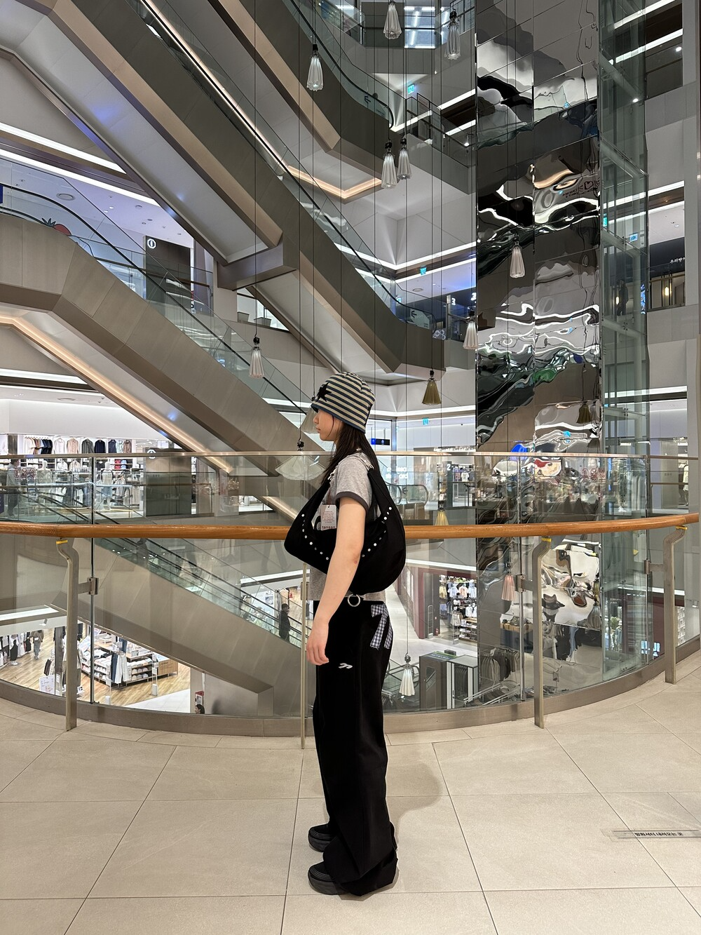 내부에 스트라이프 패턴의 안감 적용.