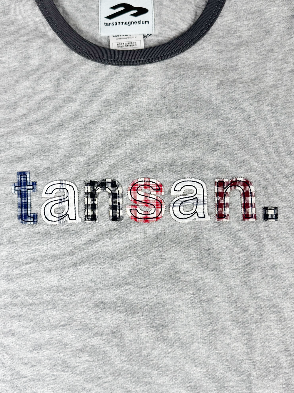 전면에 셔츠 원단으로 이루어진 아플리케 자수