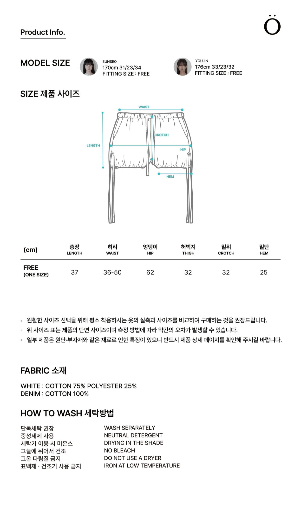 - 실측 사이즈는 재는 부분이나 사람에 따라 약간의 오차가 발생할 수 있습니다.