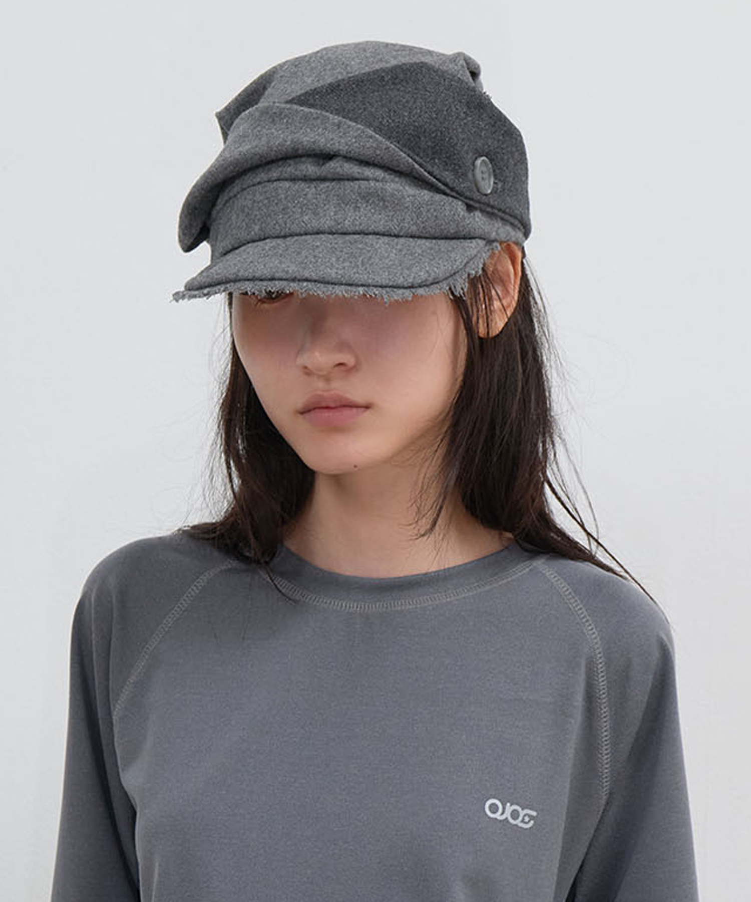 드레이프 실루엣과 프린지 마감의 울 캡모자